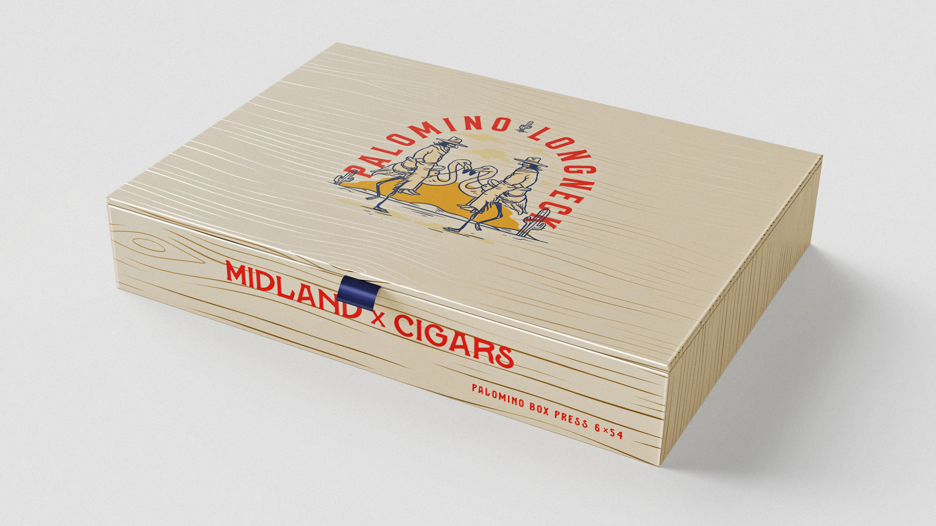 Midland x Kingmakers wanted a cigar that felt as unruly and iconic as the band itself. Rouser answered with Palomino & Longneck – a brand that walks the line between cowboy kitsch and cult collectible.