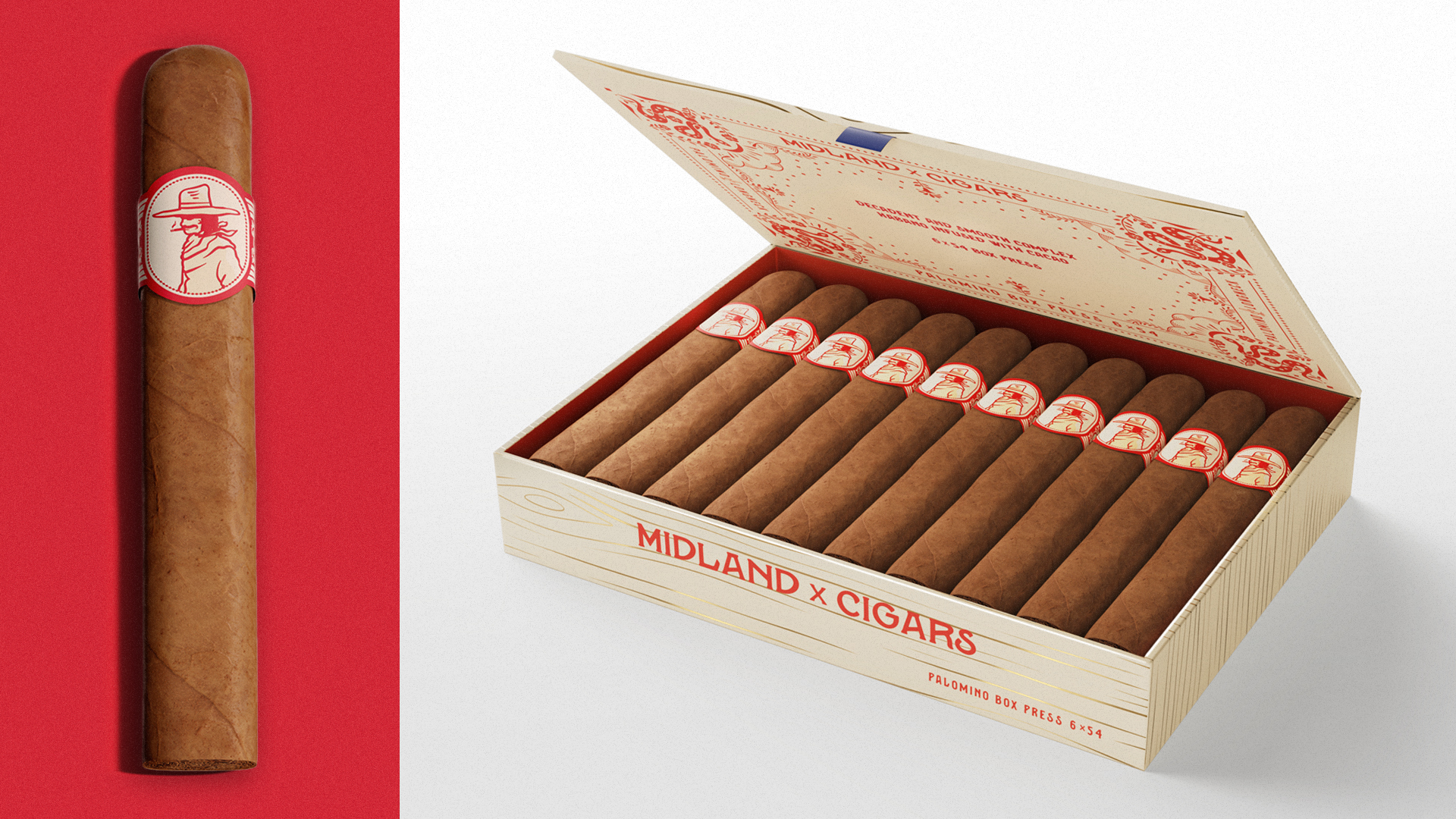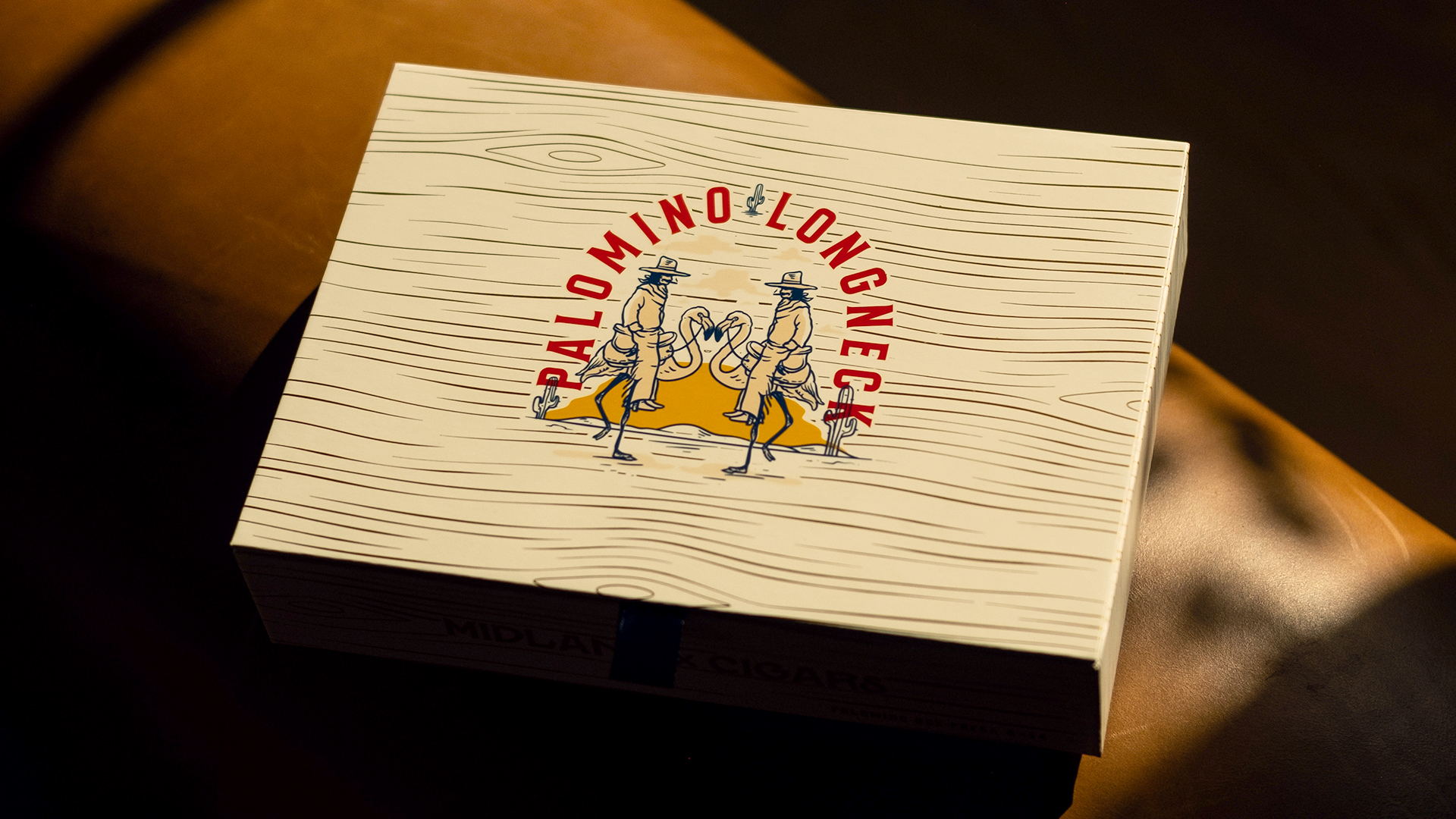 Rouser created the brand from the ground up – developing the Palomino Longneck name, tone, and visual universe for Midland’s first foray into cigars.