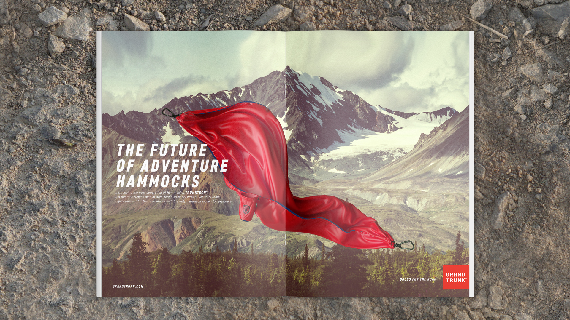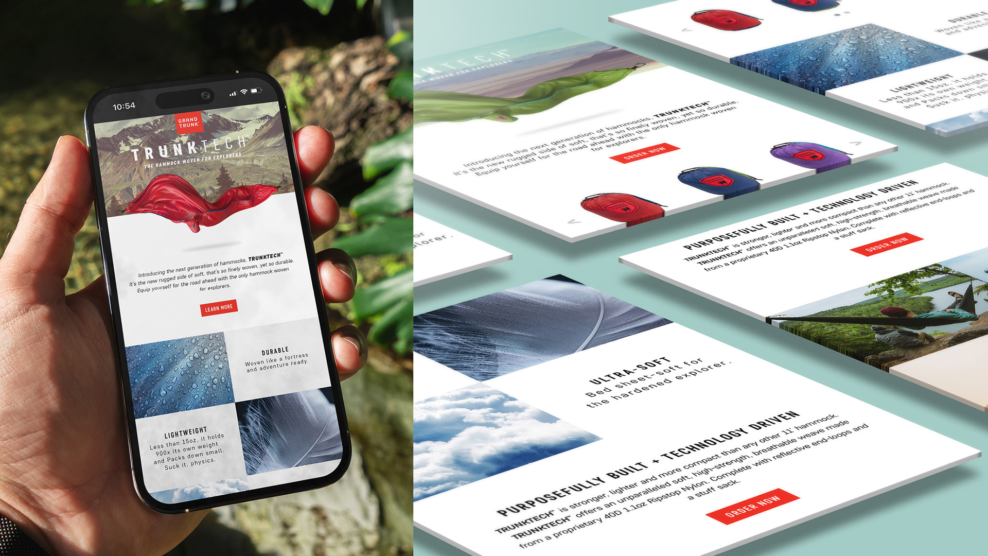 That question led to TrunkTech – Grand Trunk’s proprietary innovation in ultra-light, ultra-strong adventure hammocks. Rouser was brought in to give it a platform that felt as bold as the product itself.